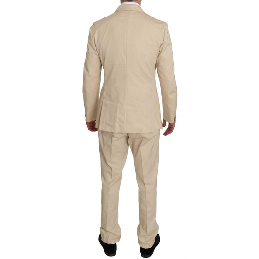 Romeo Gigli Two Piece 3 Button Beige Cotton Solid Suit