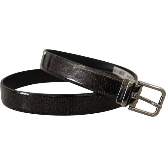 Dolce & Gabbana Brown Patent Leather Silver Metal Buckle Belt