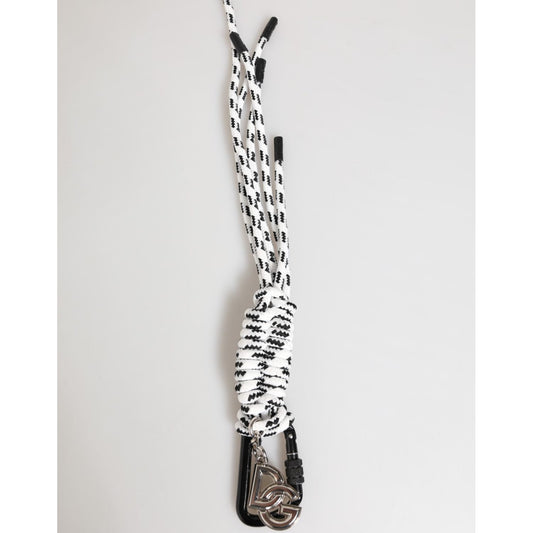 Dolce & Gabbana Black White Polyester DG Logo Silver Men Keychain Keyring