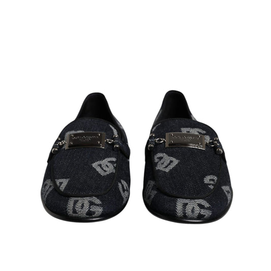 Dolce & Gabbana Black Logo Cotton Loafers Formal Dress Shoes