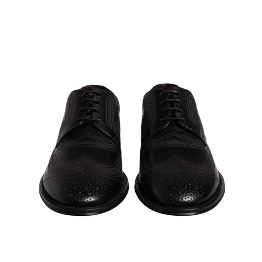 Dolce & Gabbana Black Embroidered Classic Leather Derby Dress Shoes