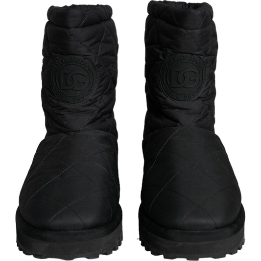 Dolce & Gabbana Black Nylon Padded Mid Calf Men Boots Shoes