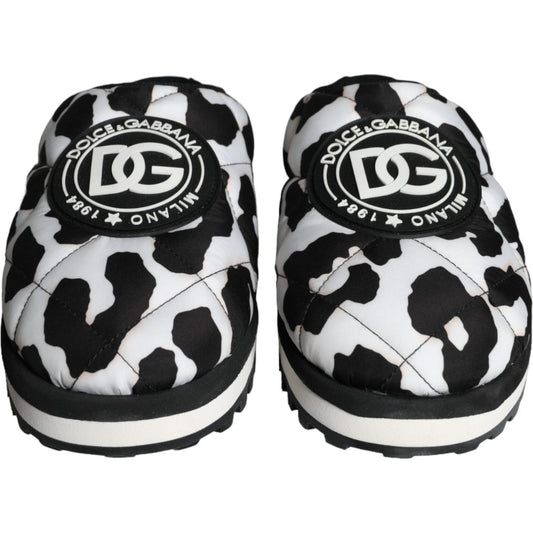 Dolce & Gabbana Black White Quilted Logo Sandals Slides Shoes