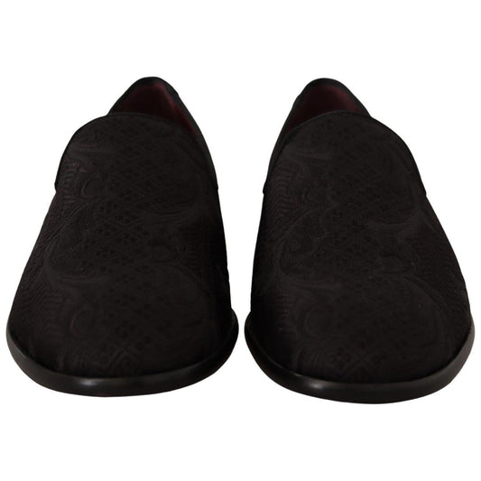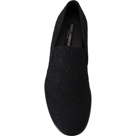 Dolce & Gabbana Black Floral Jacquard Slippers Loafers Shoes