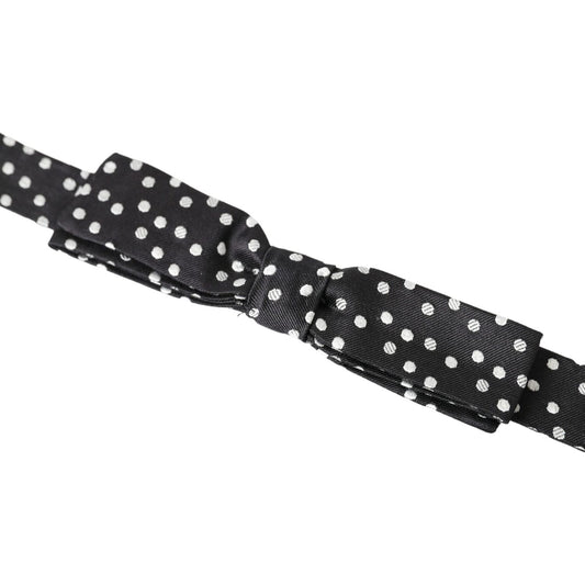 Dolce & Gabbana Black Polka Dot Silk Adjustable Men Neck Papillon Bow Tie