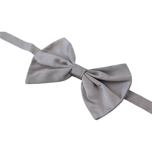 Dolce & Gabbana Bow Tie Men Silver Gray Silk Adjustable Neck Papillon