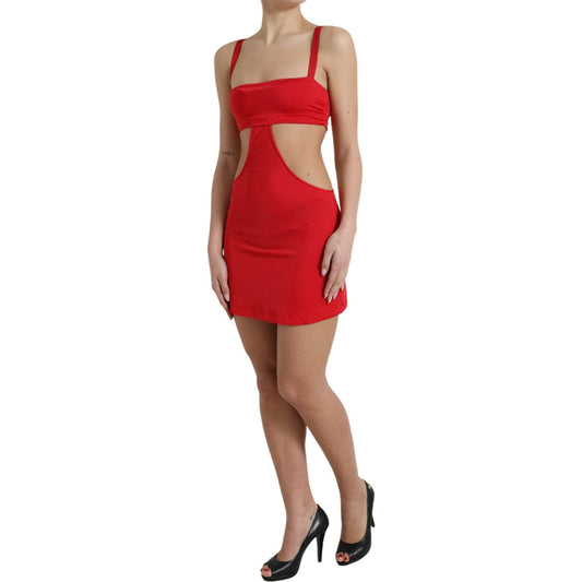 Dolce & Gabbana Red Cutout Nylon Sheath Sleeveless Mini Dress