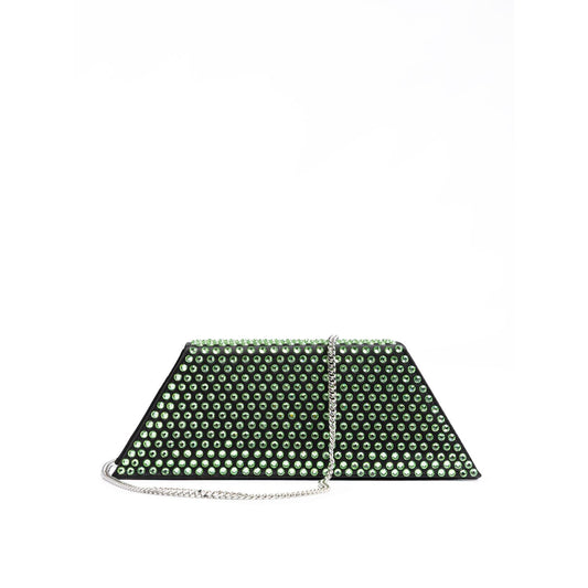 Amina Muaddi Mini Black Satin And Green Crystals Shoulder Bag
