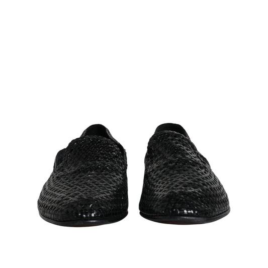 Dolce & Gabbana Black Woven Leather Slip On Loafers Shoes