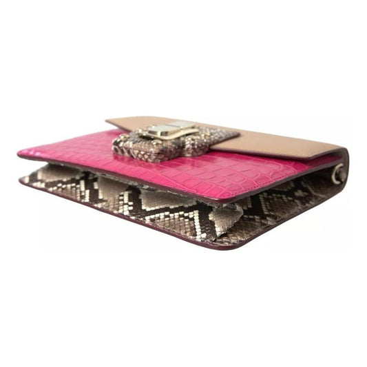 Dolce & Gabbana Pink Red Exotic Skins Gold Chain Purse LUCIA Leather Bag