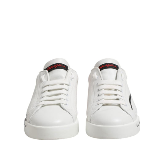 Dolce & Gabbana White Red Logo Low Top Leather Sneakers Shoes