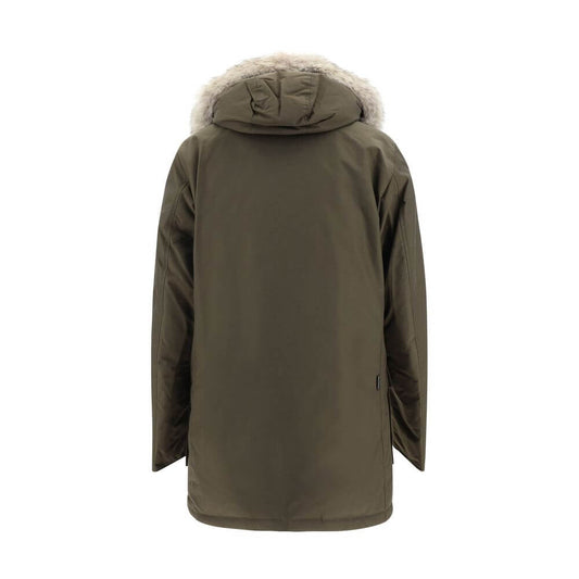 Woolrich Gray Cotton Men Jacket with Hood and Removable Fur