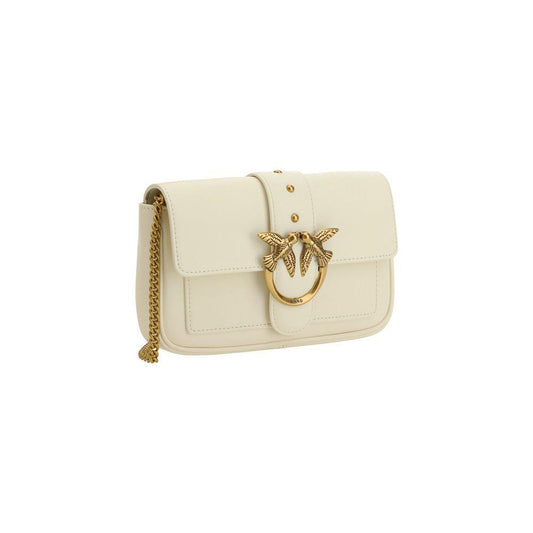PINKO White Calf Leather Bos Taurus Shoulder Bag