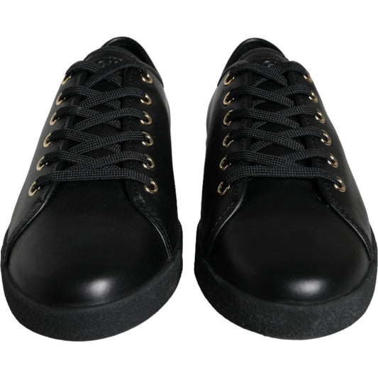 Dolce & Gabbana Black Gold Leather Classic Sneakers Shoes