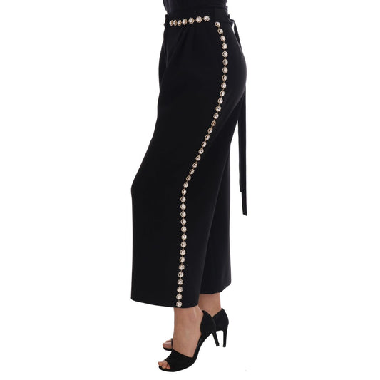 Dolce & Gabbana Black Wool Stretch Crystal Pants