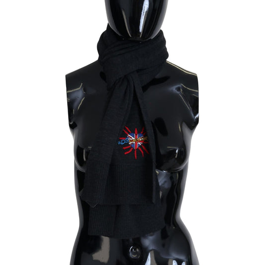 Dolce & Gabbana Black Wool Knitted Wrap Foulard Fringe Scarf