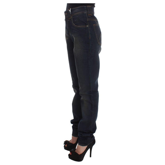 John Galliano Blue Cotton Blend Slim Fit High Waist Jeans