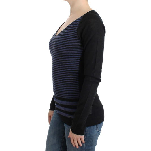 Costume National Black striped V-neck sweater