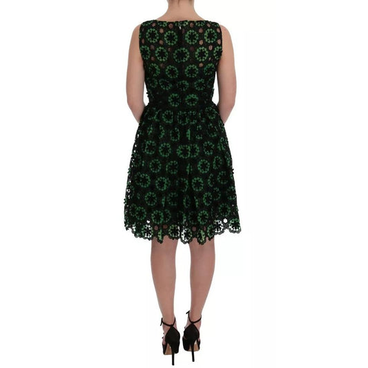 Dolce & Gabbana Green Floral Ricamo A-Line Shift Dress