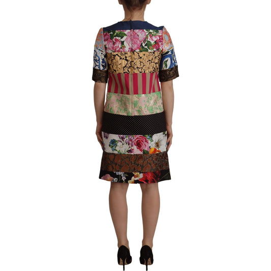 Dolce & Gabbana Multicolor Pachwork Floral Sheath Jaquard Mini Gown Dress