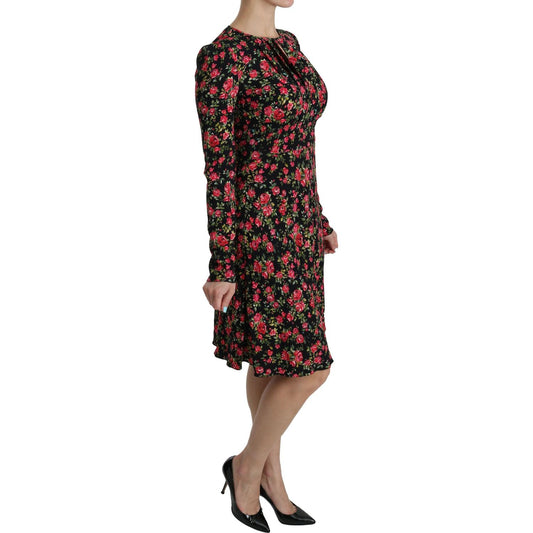 Dolce & Gabbana Black Floral Longsleeve Knee Length Dress