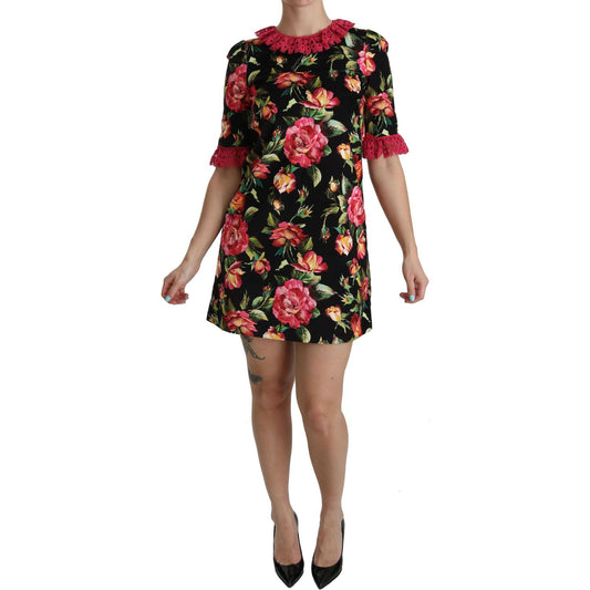 Dolce & Gabbana Floral Pink Lace A-Line Shift Mini Dress