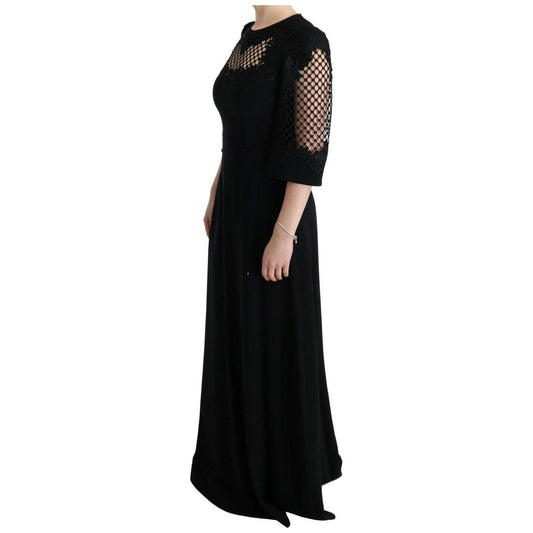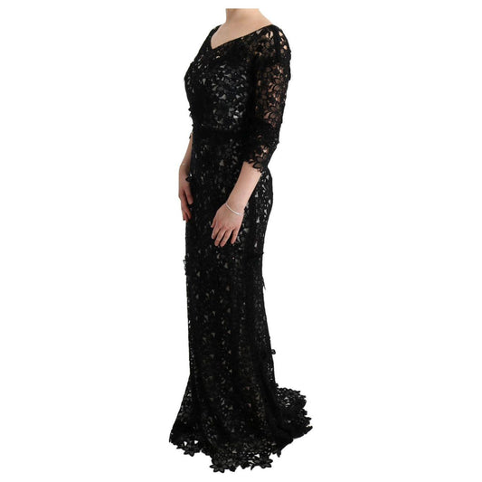 Dolce & Gabbana Black Floral Ricamo Sheath Long Dress