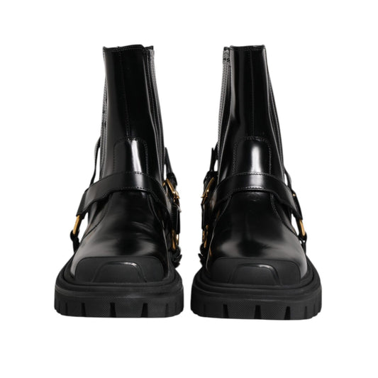 Dolce & Gabbana Black Leather Chelsea Men Short Boots Shoes