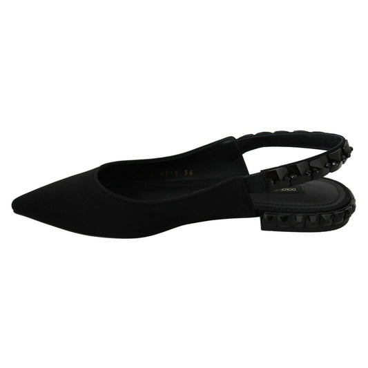 Dolce & Gabbana Black Flats Slingback Charmeuse Shoes