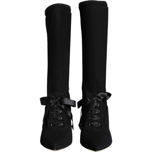 Dolce & Gabbana Black Stiletto Heels Mid Calf Boots Shoes