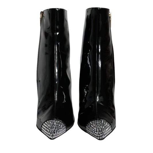 Dolce & Gabbana Black Patent Leather Pointed Ankle Boots Shoes