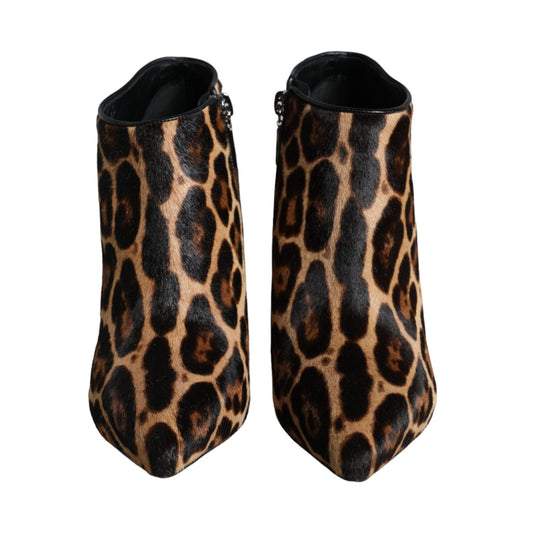 Dolce & Gabbana Brown Leopard Calf Fur Heels Ankle Boots Shoes