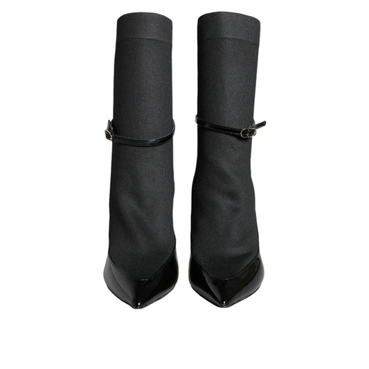 Dolce & Gabbana Black Leather Stilettos Booties Socks Shoes