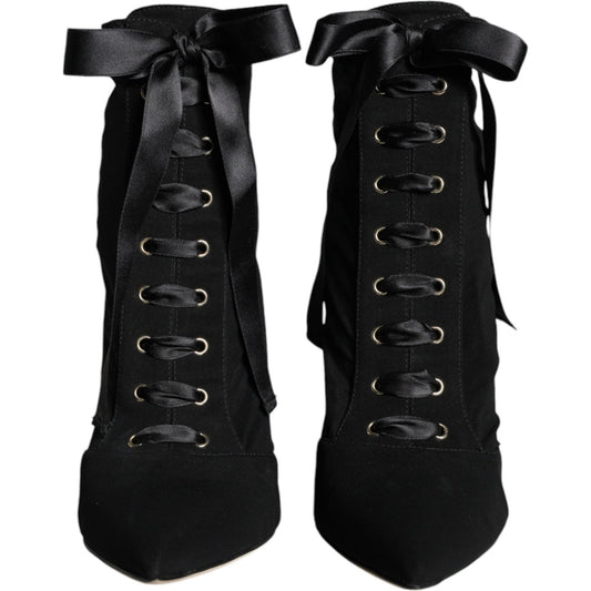 Dolce & Gabbana Black Stretch Stilettos Booties Socks Shoes
